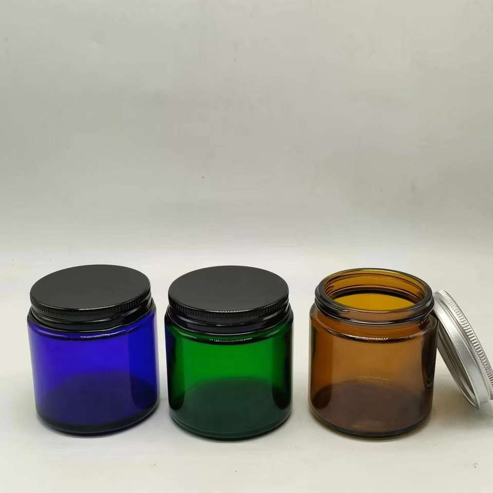 เทียนหอมทรงกระบอกกลมสีเหลืองอำพัน น้ำเงิน เขียว ในภาชนะแก้วหนาหรูหราแบบกำหนดเองได้