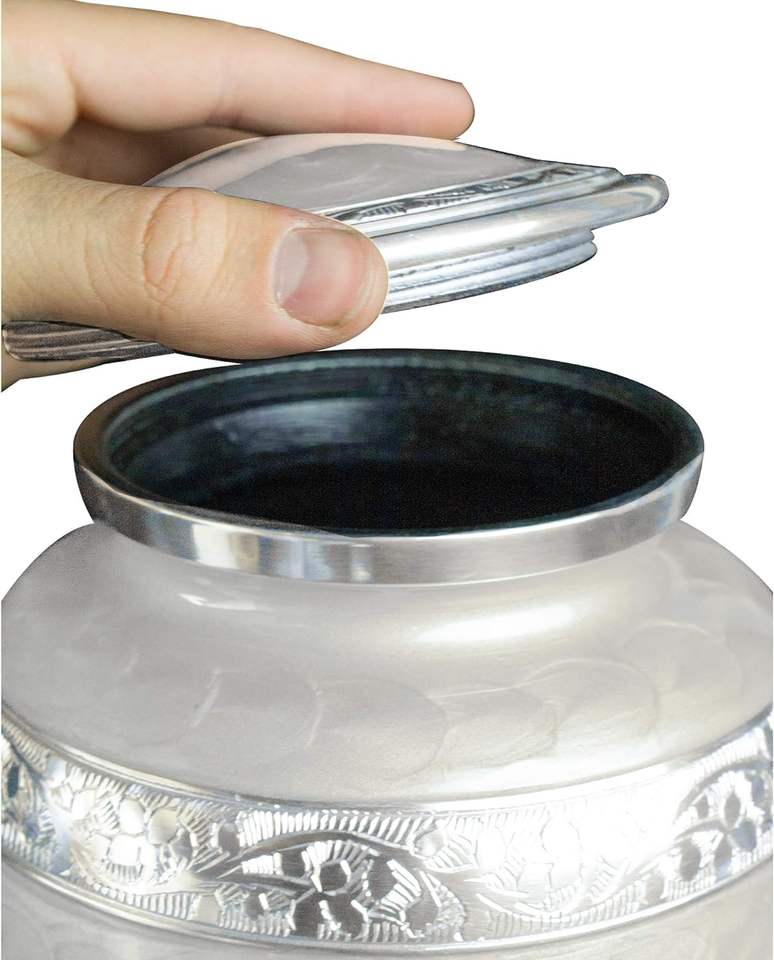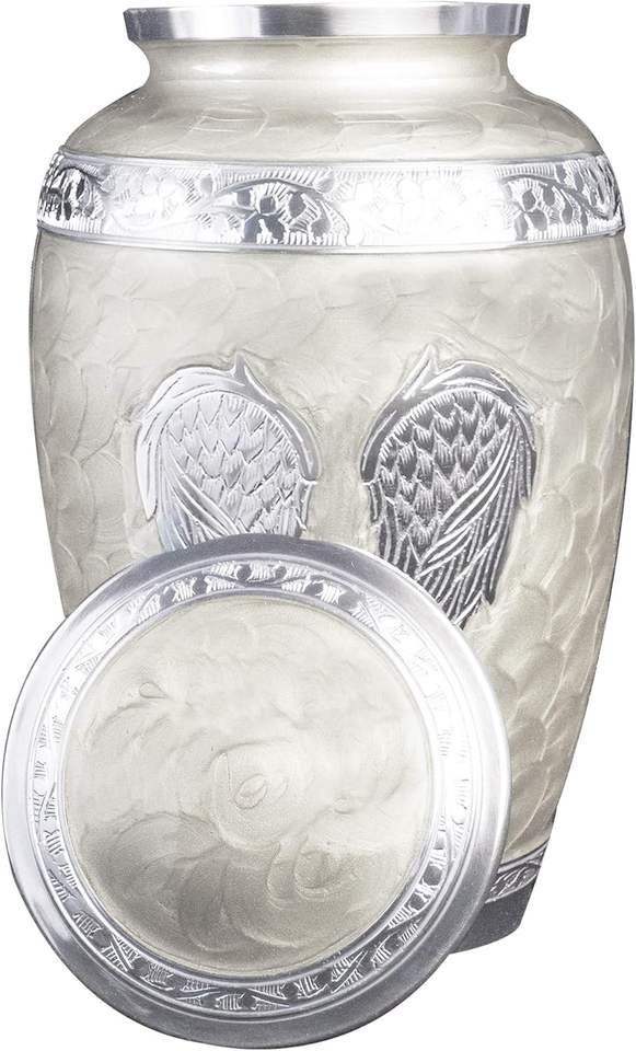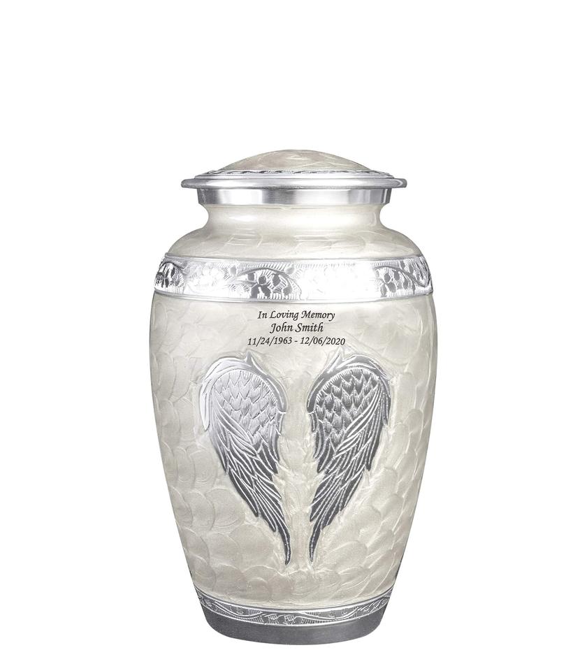 โกศฝังศพปีกนางฟ้าแกะสลักแบบกําหนดเองพร้อมถุงกํามะหยี่ (สีขาวมุกขนาดใหญ่พิเศษ)