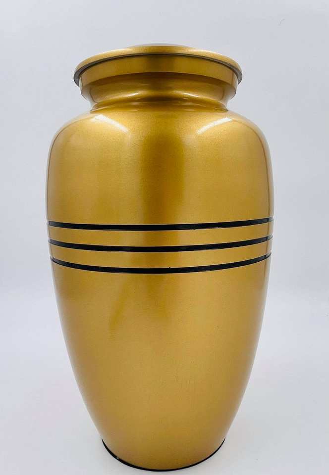 ชื่อสินค้า:โกศบรรจุอัฐิลายทางสีดำและทองเหลือง สลักชื่อได้