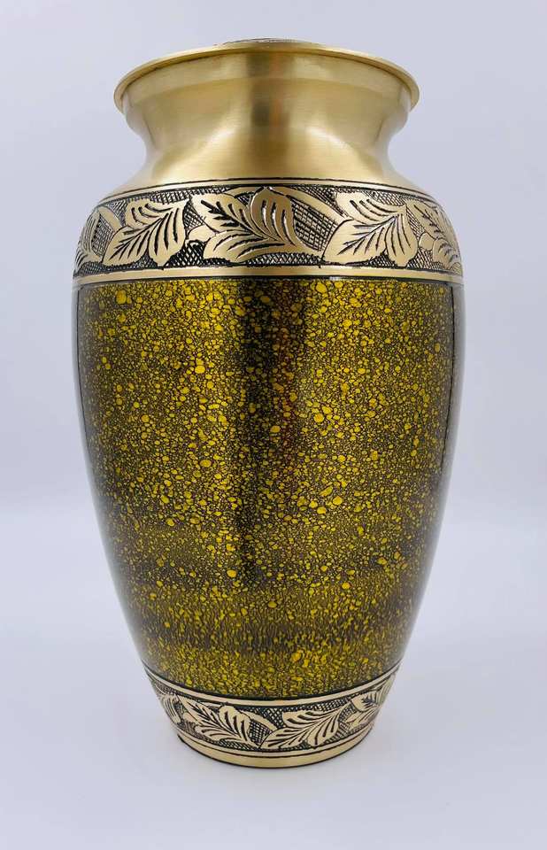 ถุงใส่เถ้ากระดูกทำจากโลหะลายทางทำจากทองเหลืองสีดำของอินเดียสลักที่ใส่ขี้เถ้าที่ระลึกขายส่ง