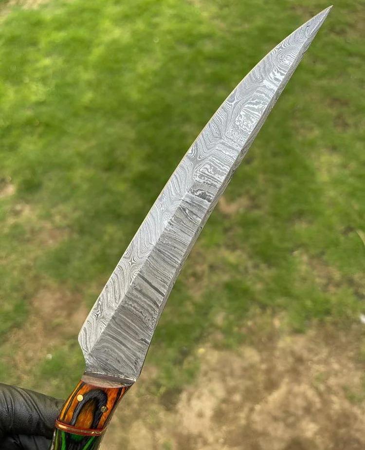มีดแล่เนื้อเหล็กดามัสกัสแบบสั่งทำพิเศษ เป็นมิตรกับสิ่งแวดล้อม ใบมีดคาร์บอนสูง ล้างในเครื่องล้างจานได้ ตีขึ้นรูปด้วยมือ ขนาดสั่งทำได้ ผลิตโดยช่างฝีมือ