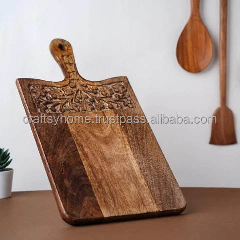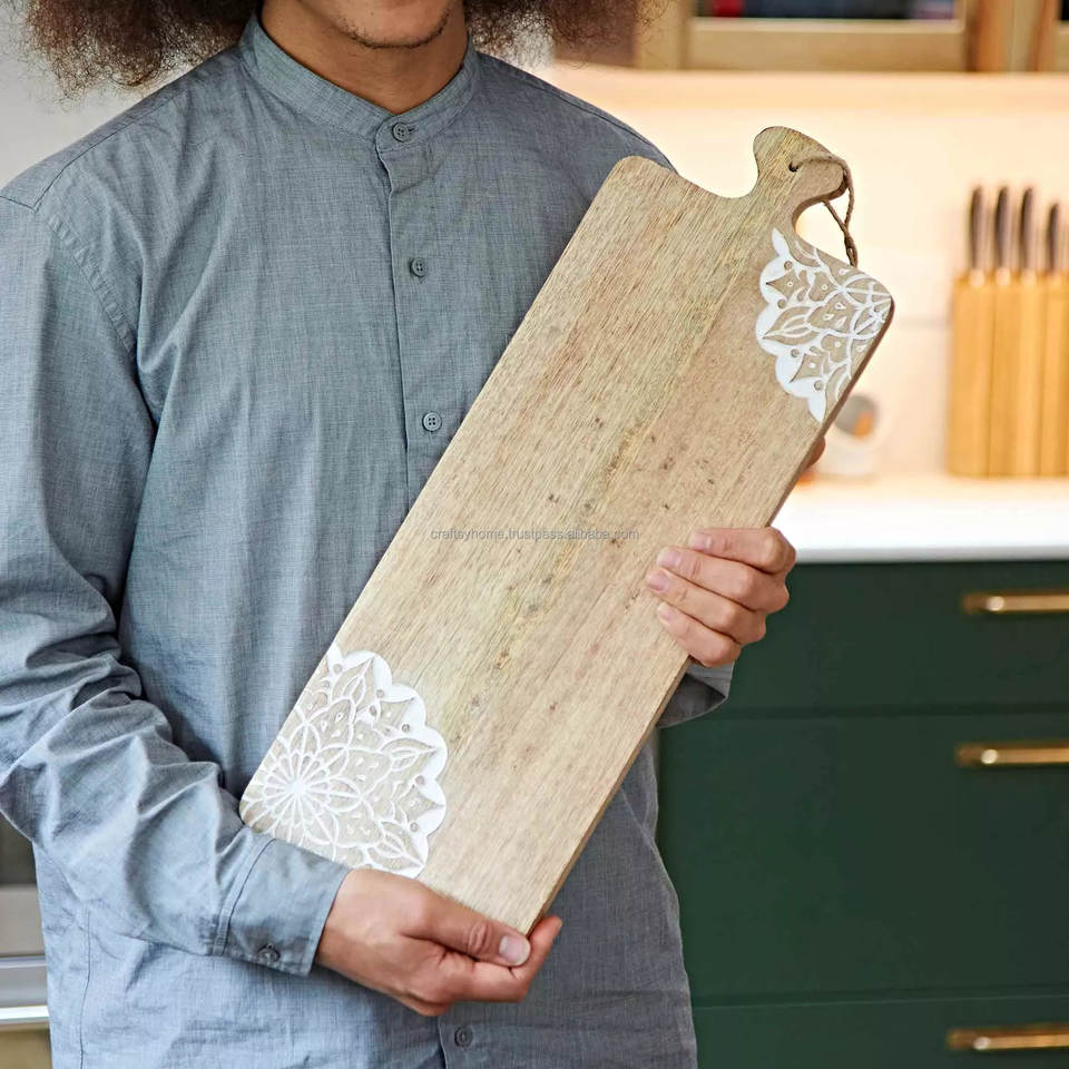 เขียงไม้สีขาวเคลือบเงาลายดอกไม้แกะสลักออกแบบได้ตามต้องการเครื่องครัวกระดานเสิร์ฟฮวงจุ้ยสัตว์สำหรับ