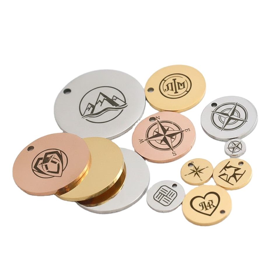 ที่กำหนดเองแกะสลักด้วยคำใดๆที่ว่างเปล่าปั๊มรอบเสน่ห์จี้แท็กเครื่องประดับโลหะ
