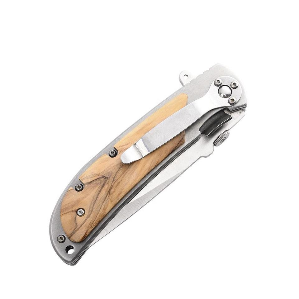 มีดพับสำหรับตั้งแคมป์กลางแจ้ง ด้ามไม้สลักลายเอง ใบมีดเหล็ก 3Cr13 พร้อมคลิปหนีบกระเป๋า