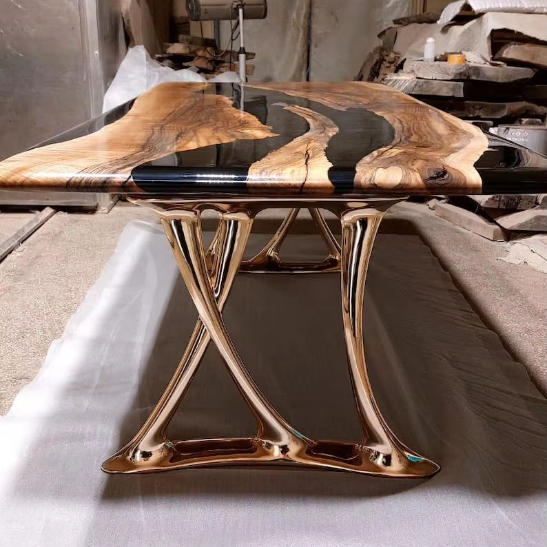 โต๊ะเรซิ่นอีพ็อกซี่สีดำแบบสั่งทำพิเศษ, โต๊ะรับประทานอาหารไม้สัก/มะม่วงแท้, โต๊ะไม้ขนาดใหญ่ทำมือ