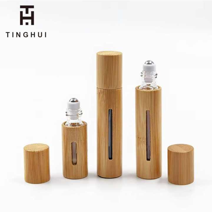 ขวดโรลออนน้ำมันหอมระเหยแบบกำหนดเอง 5 มล. ขวดโรลออนไม้ไผ่ขายส่ง น้ำหอม 10 มล. ขวดโรลออนไม้ไผ่