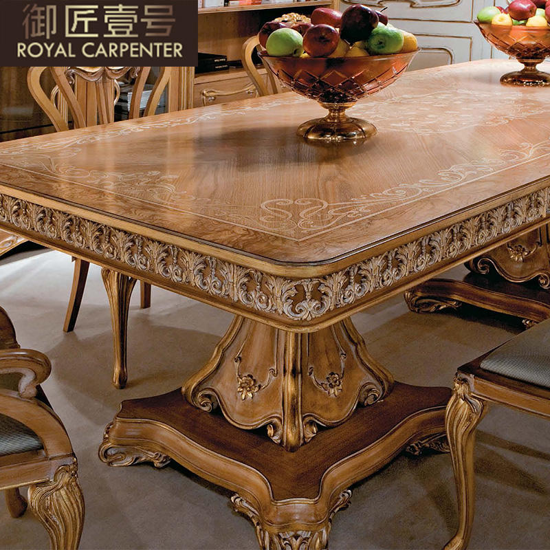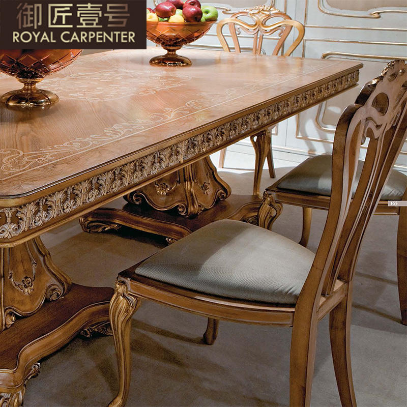 ชุดโต๊ะอาหารไม้เนื้อแข็งสไตล์ยุโรปแบบกำหนดเอง รูปทรงสี่เหลี่ยมผืนผ้า สไตล์ฝรั่งเศส แกะสลัก เฟอร์นิเจอร์ร้านอาหาร ชุดห้องรับประทานอาหาร