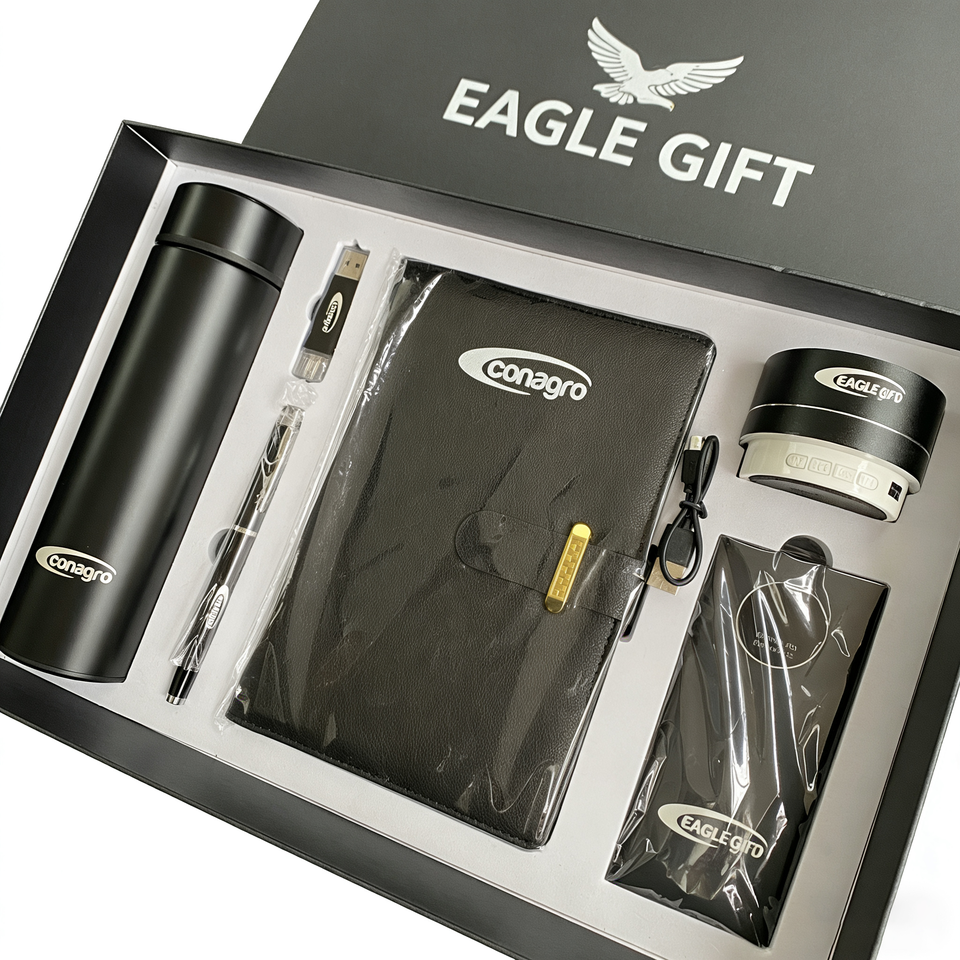 ชุดของขวัญสำหรับผู้บริหารระดับสูง ประกอบด้วยสมุดบันทึก ปากกา แฟลชไดรฟ์ กระติกน้ำร้อน ลำโพง สายชาร์จ และพาวเวอร์แบงค์