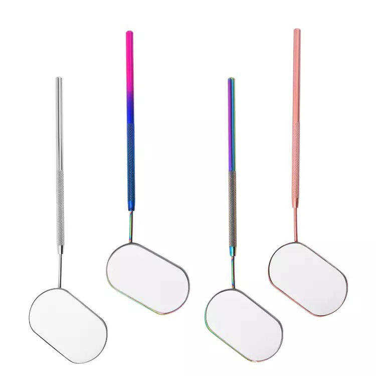 กระจกแต่งขนตาแบบกำหนดเอง ทรงพระจันทร์ กระจกขนตาแบบยั่งยืน สีชมพูเคลือบโลโก้