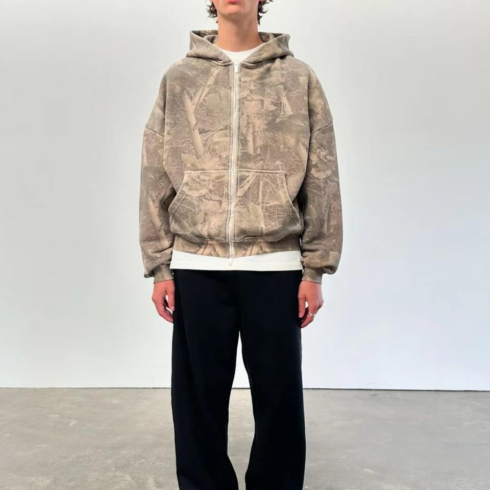 เสื้อฮู้ดลายพรางพิมพ์ลายทั้งตัว ผ้าเฟรนช์เทอร์รี่หนานุ่ม ซิปหน้า สำหรับผู้ชาย