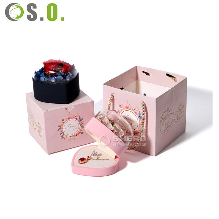 กล่องใส่แหวนดอกไม้แบบกำหนดเอง กล่องใส่แหวนเพชรคุณภาพสูง กล่องใส่เครื่องประดับกระดาษเก๋ไก๋พร้อมโลโก้ กล่องใส่แหวนดอกไม้
