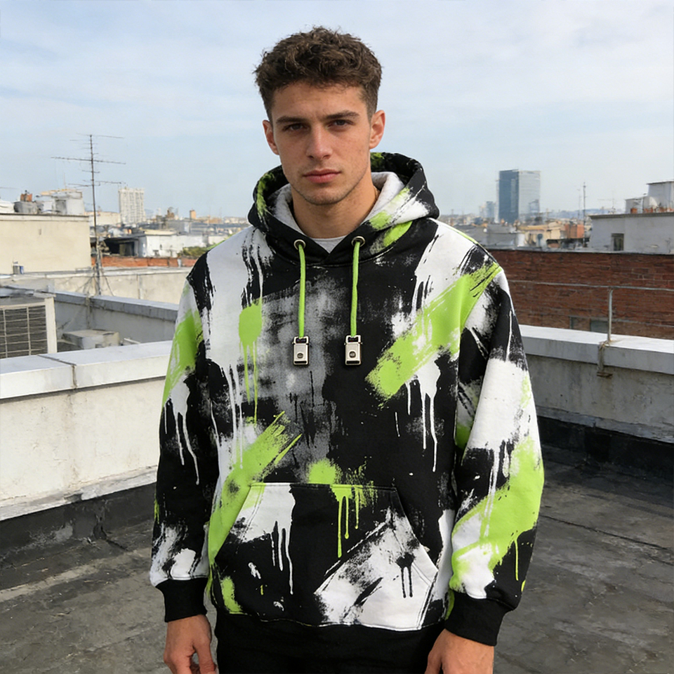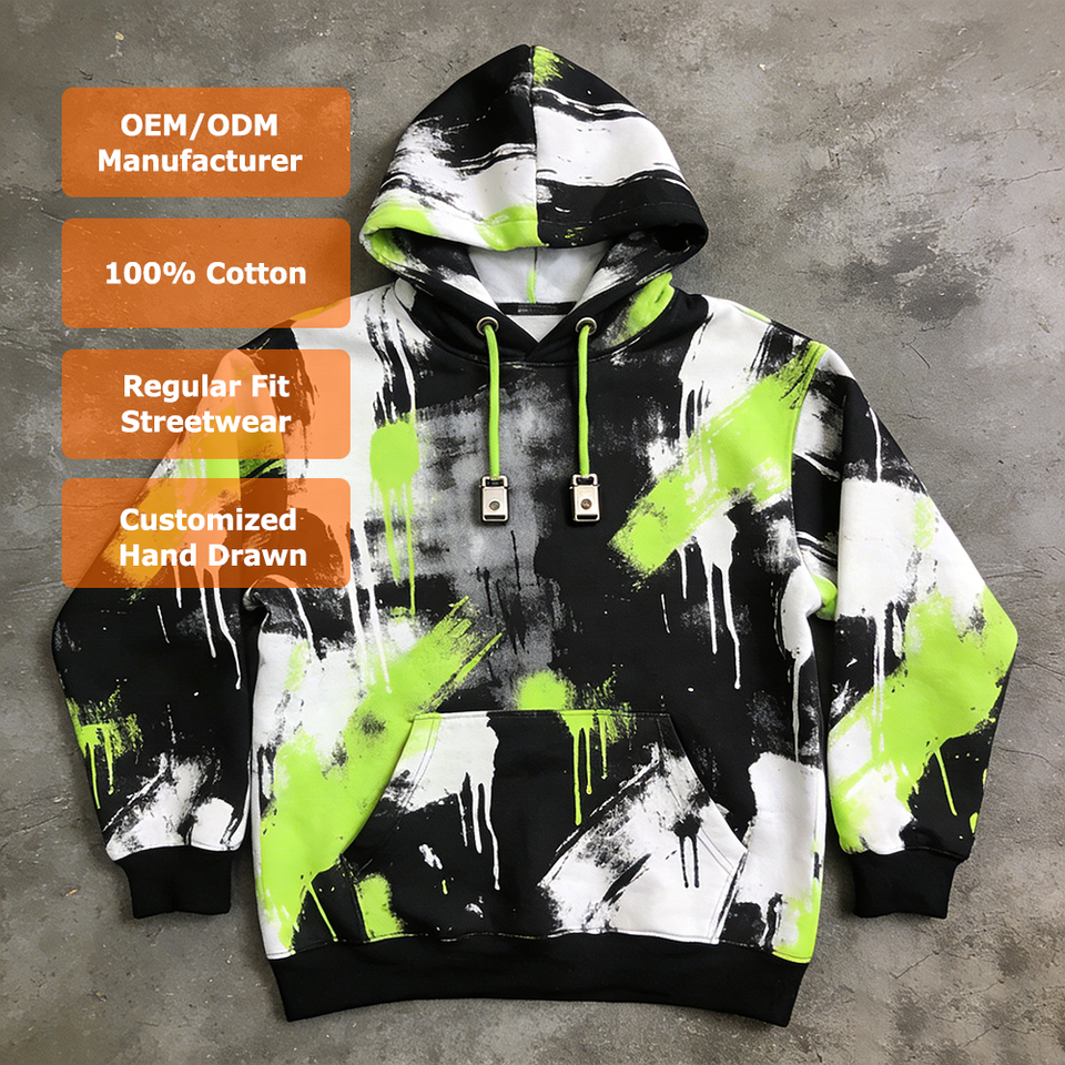 เสื้อฮู้ดดี้ผู้ชายแบบสั่งทำพิเศษ พิมพ์ลายเต็มตัว มีเชือกผูก ปิดคอแบบสวม สไตล์สตรีทแวร์ วินเทจ ลายวาดมือ กันยับ มีกระเป๋า ปลายแขนริบ OEM