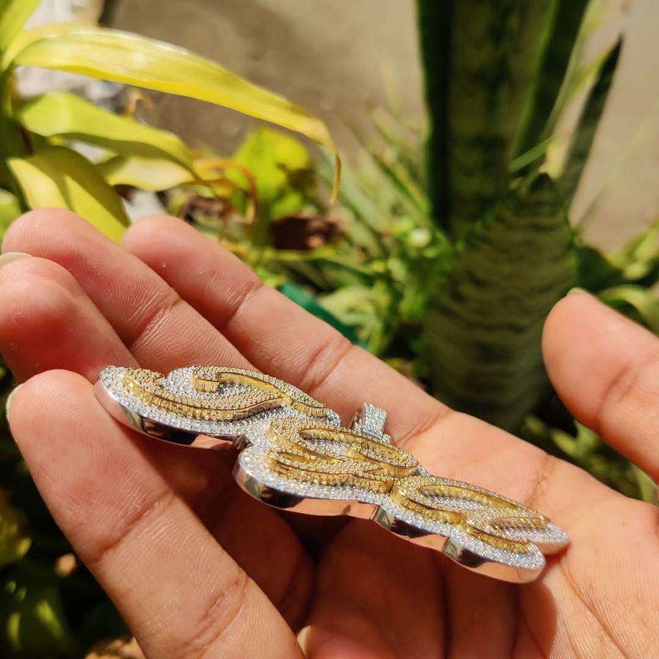 จี้ฮิปฮอปแบบกำหนดเอง ประดับเพชรโมอิสซาไนต์ VVS เกรดแล็บ ดีไซน์โลโก้ชื่อ ผลิตจากเงินแท้ สำหรับผู้ชาย ฉลองครบรอบ