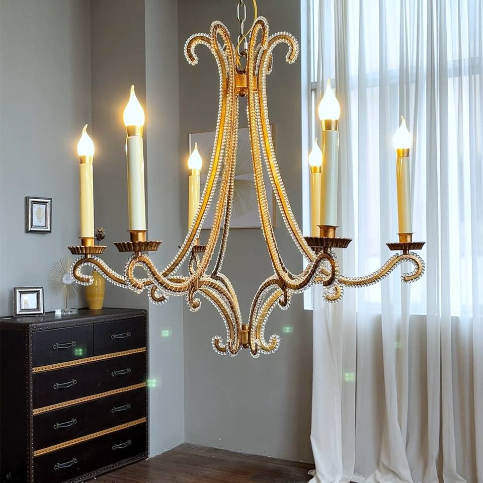 โคมไฟระย้าเพดานตกแต่งงานแต่งงานสุดหรูหราสไตล์วินเทจประดับด้วยลูกปัดแก้วเหล็กแบบสั่งทำพิเศษ