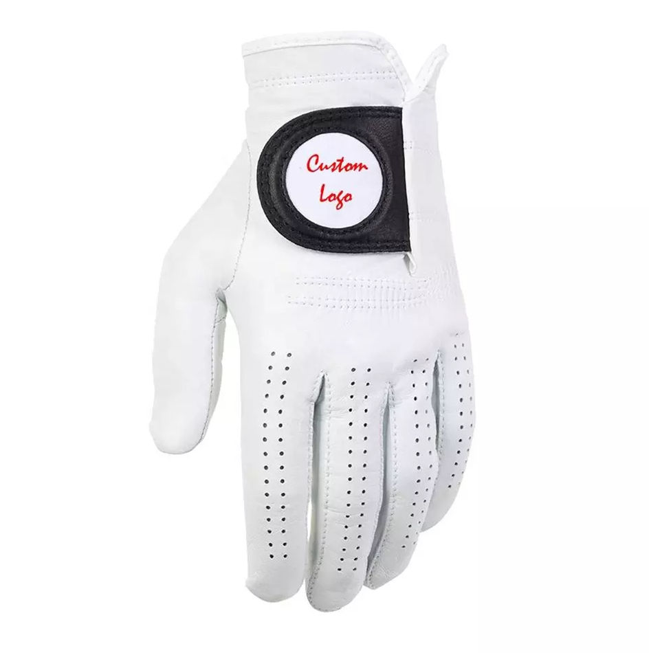 Custom Factory Wholesale Golf Gloves Zero Friction Male Men's Compression-Fit Genuine Leather Waterproof Universal Fit White
