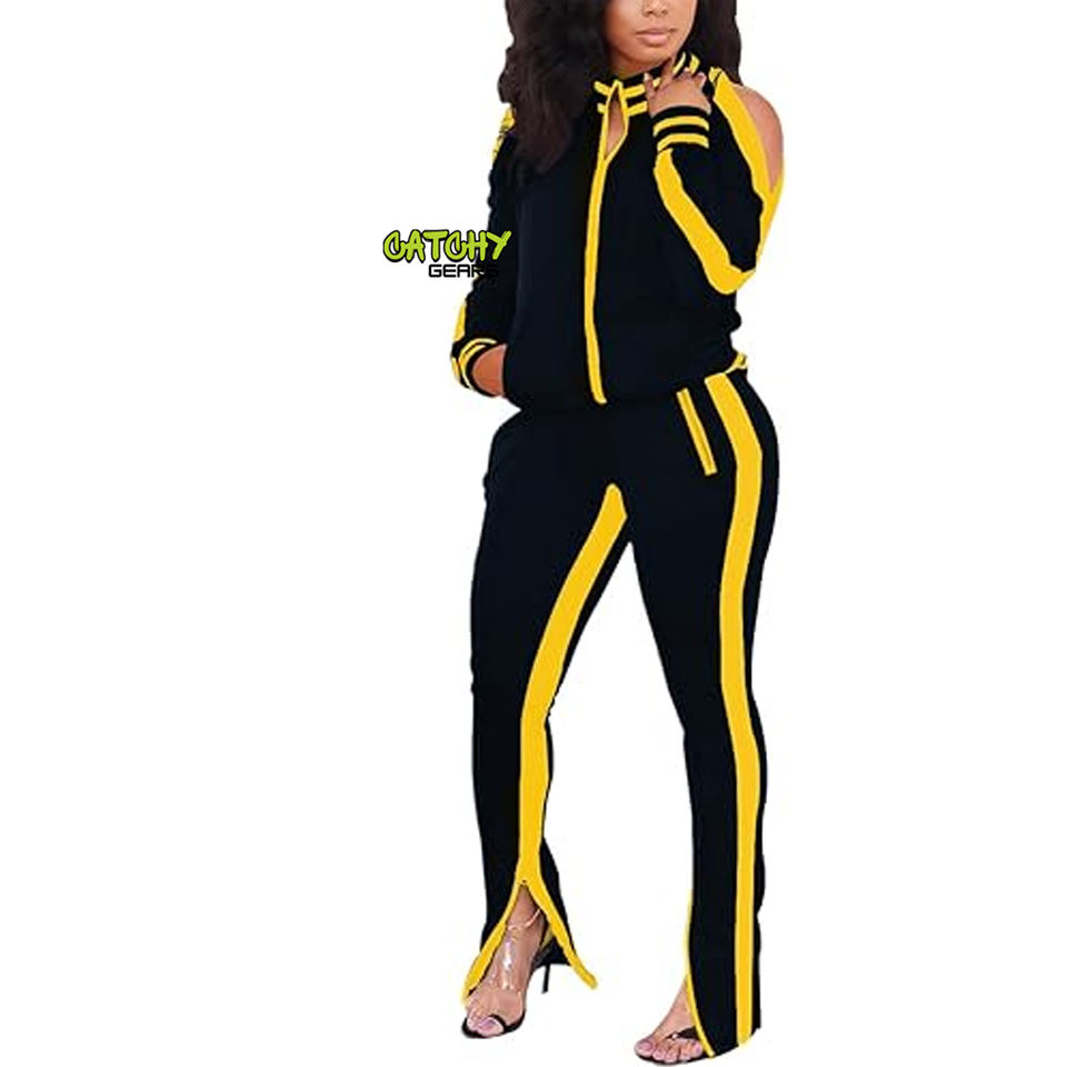 ชุดวอร์มสำหรับผู้หญิงชุดวิ่งออกกำลังแบบเรียงซ้อนกันฉลากส่วนตัวสำหรับฤดูใบไม้ร่วง
