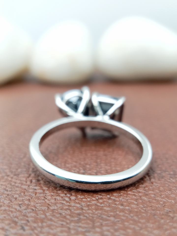 แหวนแต่งงาน/หมั้นเพชรทรงหัวใจแบบสั่งทำพิเศษ ประดับเพชร VVS เงินแท้ 925 รับรองโดย GIA ดีไซน์ทันสมัย 100%