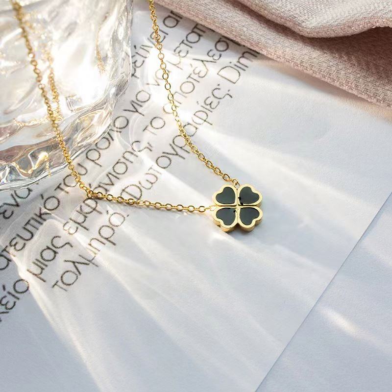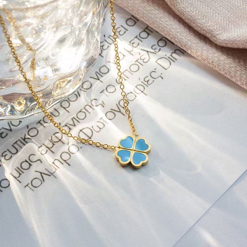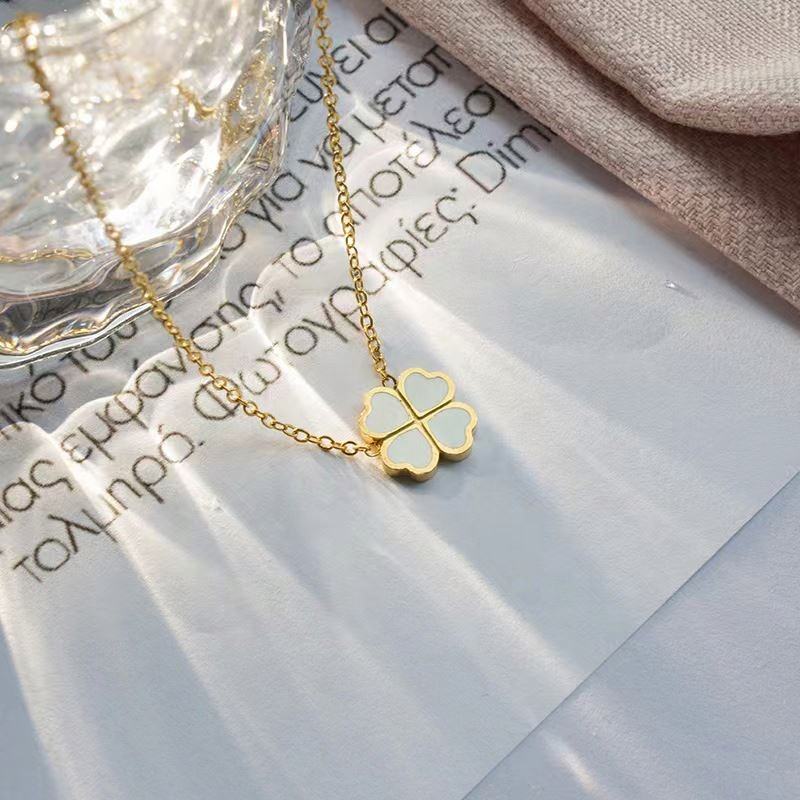 สร้อยคอจี้รูปใบโคลเวอร์สี่แฉกนำโชค ชุบทอง 18K บนสแตนเลสสตีล สำหรับผู้หญิง