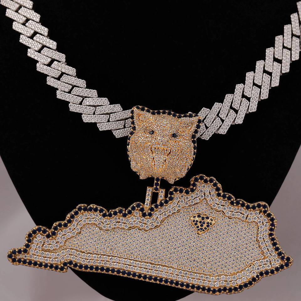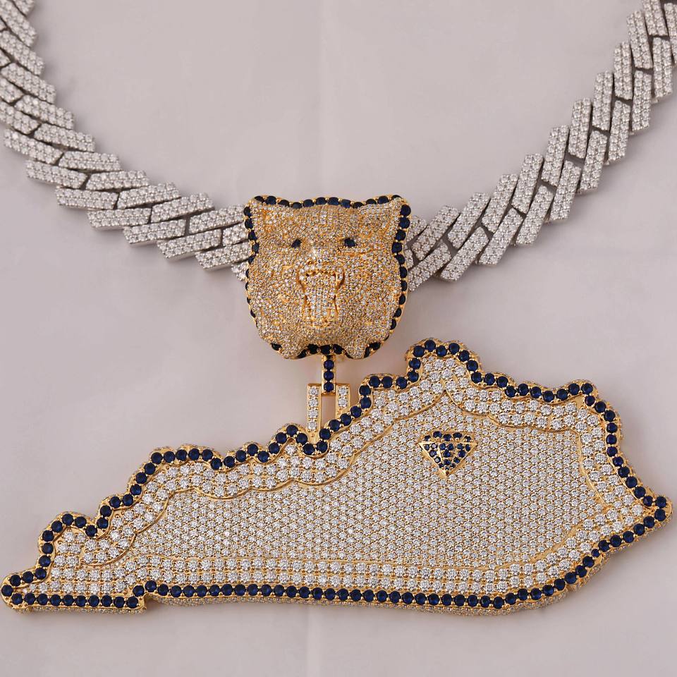 จี้เพชรโมอิสซาไนต์ทรงแผนที่ ดีไซน์เก๋ สไตล์ฮิปฮอป ชุบทอง 18K เงินแท้ 925 สำหรับงานปาร์ตี้