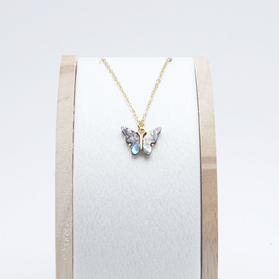 Custom Fashion Abalone Shell Butterfly Pendant Necklace and Earrings Jewelry Set