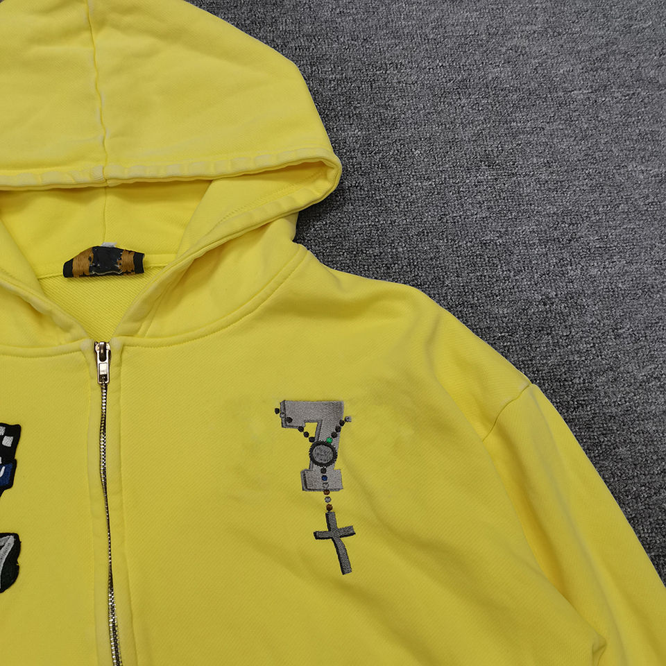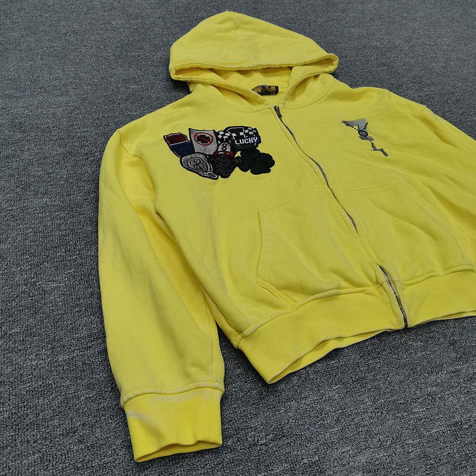 เสื้อฮู้ดดี้ทรงบ็อกซี่แบบสวม ซิปหน้า ตัวใหญ่ ปักลายตัวอักษร ล้างสีแบบแอซิดวอช ทรงครอป สำหรับผู้ชาย