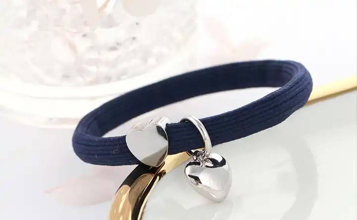 Custom Fashion Bracelet Hair Elastic Hair Ties Hair Bands With Silver Golden Charms Pendants