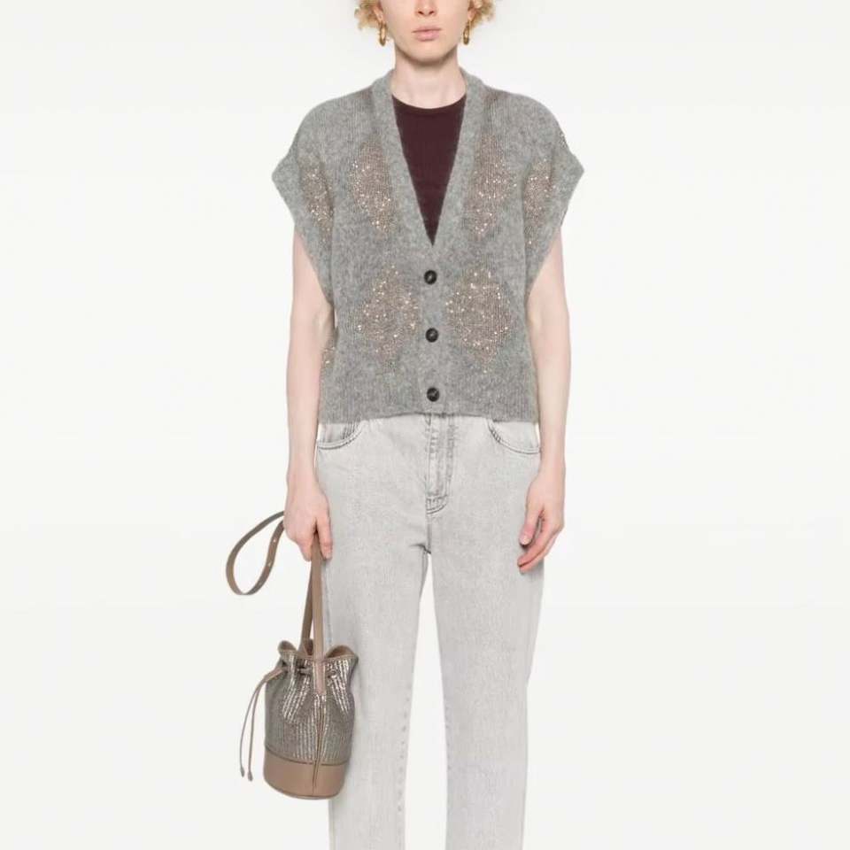 เสื้อกั๊กคอวีแขนกุดสำหรับผู้หญิงเสื้อสเวตเตอร์แบบสวมหัวผ้าไนลอนผสมผ้าฝ้ายถักแฟชั่นตามสั่งฤดูร้อน
