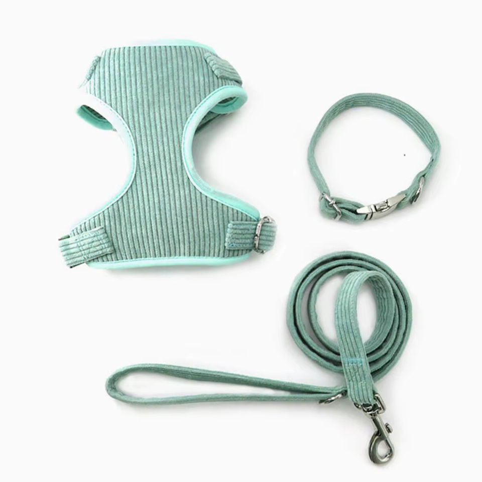 ชุดสายจูงและปลอกคอสุนัขแบบปรับได้ ทำจากผ้าคอตตอนคอร์ดูรอยและโพลีเอสเตอร์ สำหรับสุนัขพันธุ์ใหญ่