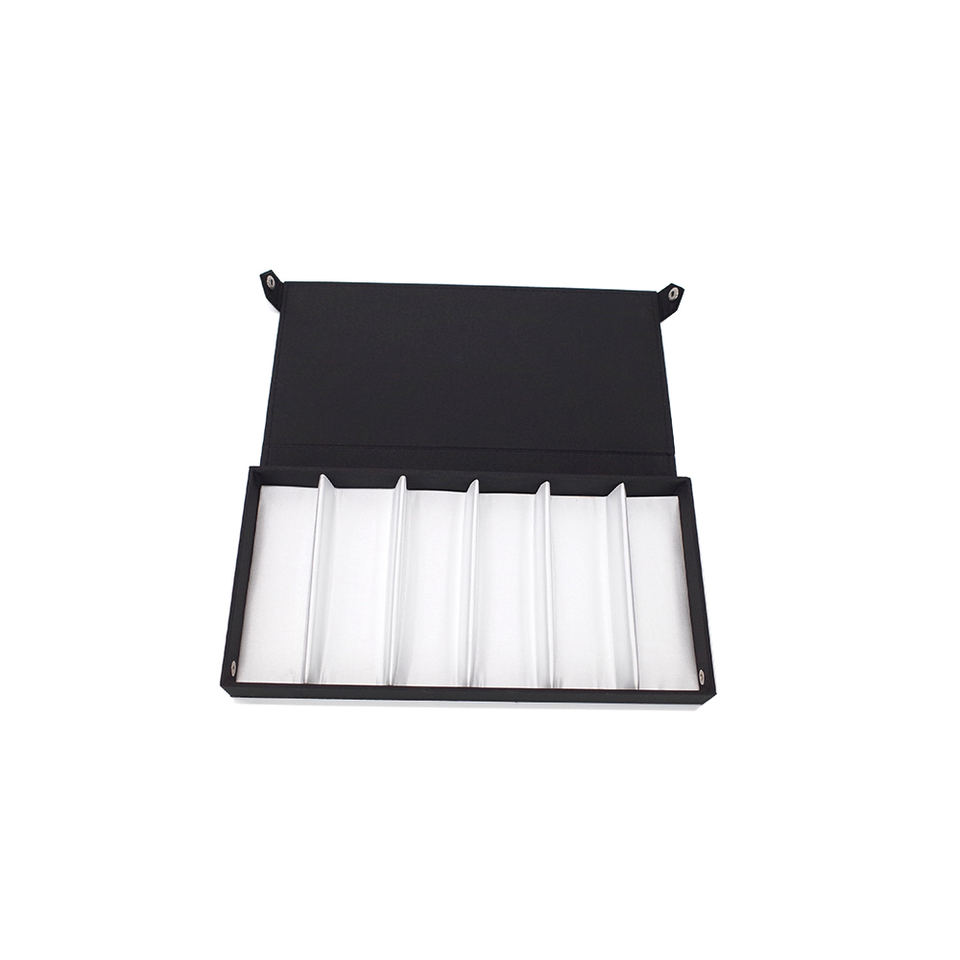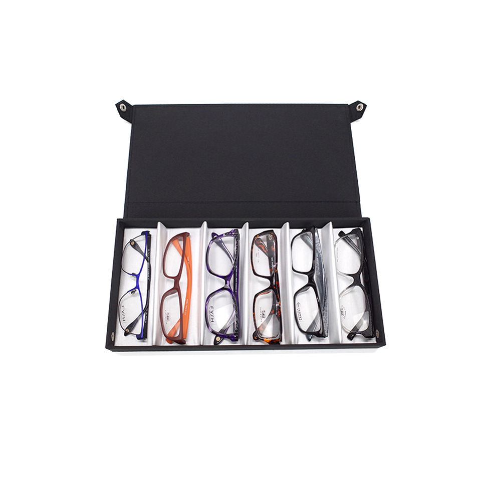 Custom Fashion Handmade Fabric Black Eyeglasses Case Optical Frame & Sunglasses Lens Display Tray with Cover for 6 Frames