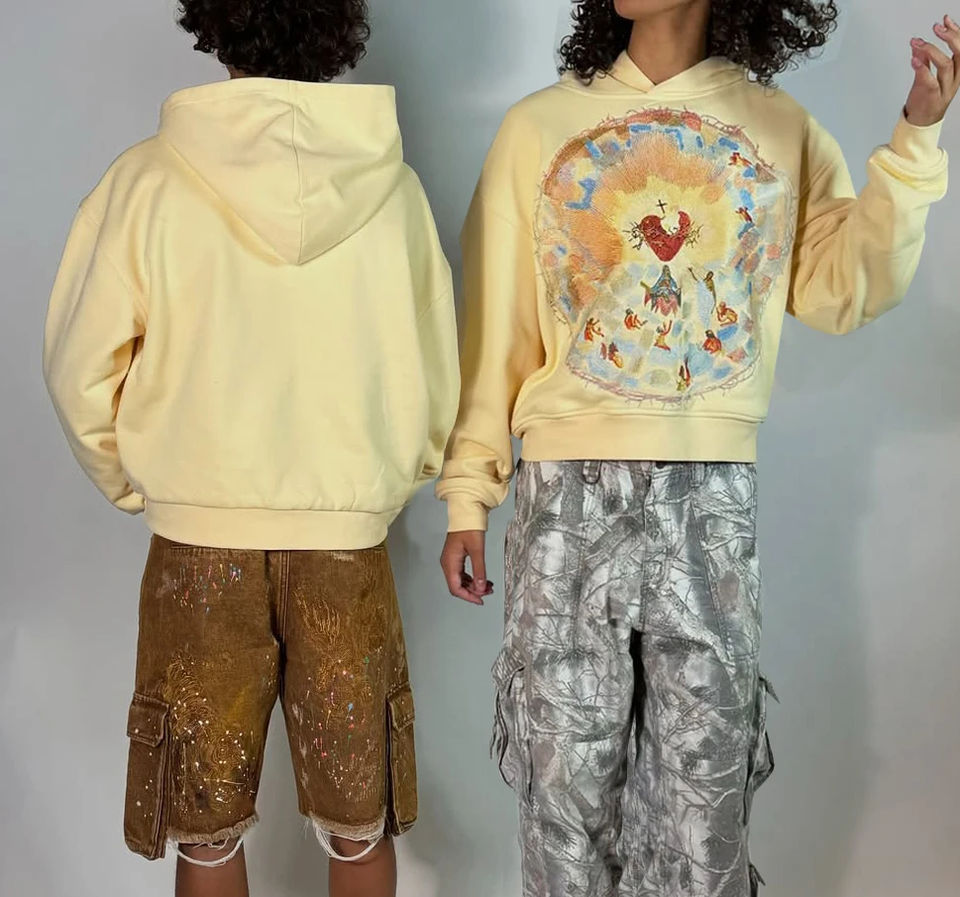 เสื้อฮู้ดดี้ผู้ชายทรงโอเวอร์ไซส์ผ้าเฟรนช์เทอร์รี่เนื้อหนา ปักลายแบบฉีดตรง ดีไซน์แฟชั่นสั่งทำพิเศษ