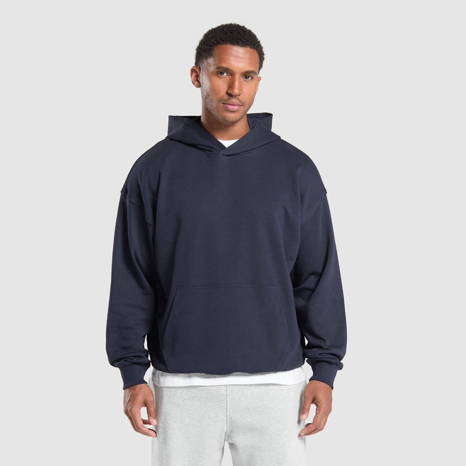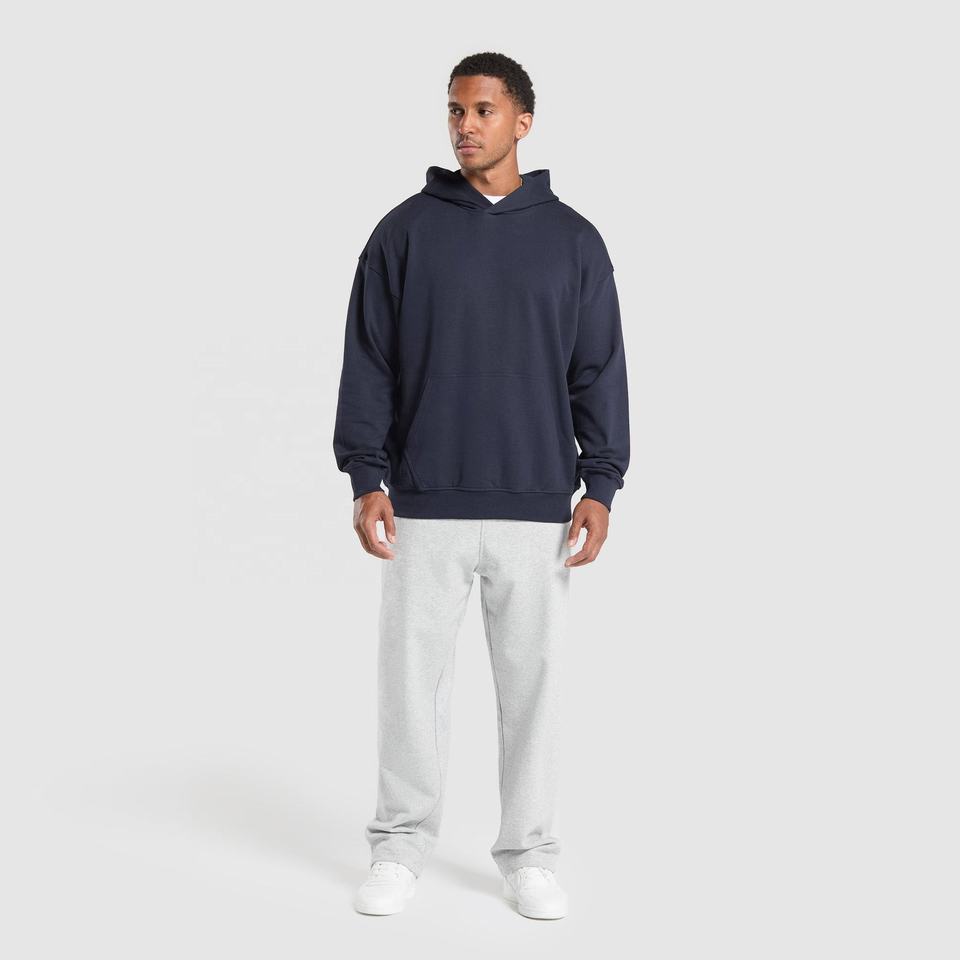 เสื้อฮู้ดผู้ชายแบบเรียบๆเปิดไหล่ไม่มีเชือกเสื้อสเวตเชิ้ตแขนยาวโอเวอร์ไซส์สำหรับผู้ชายแฟชั่นตามสั่ง