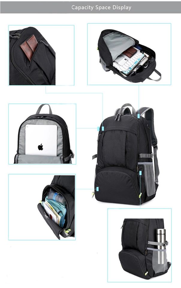 กระเป๋าเป้สะพายหลังแบบพับได้ น้ำหนักเบา สำหรับกีฬา แฟชั่นสั่งทำพิเศษ บุด้วยไนลอนกันน้ำ พร้อมซิปปิด