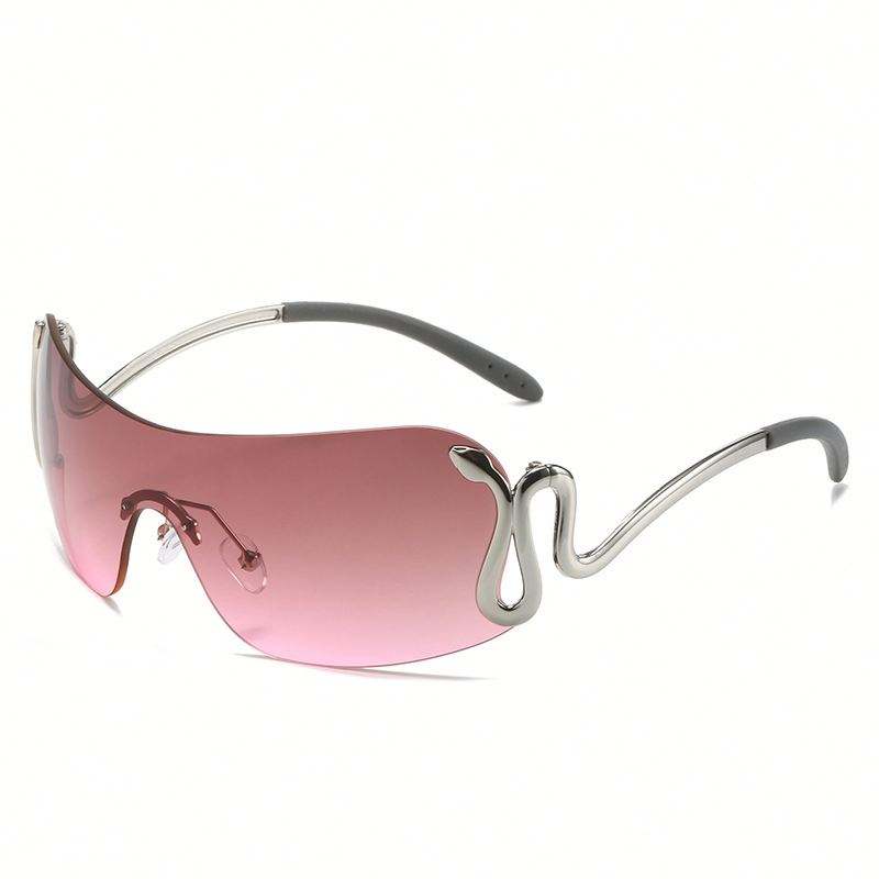 แว่นกันแดดแฟชั่นสไตล์พังก์สำหรับผู้ชายและผู้หญิง เลนส์ชิ้นเดียว กรอบโลหะ ป้องกันรังสียูวี 400 เลนส์ไล่เฉดสี ทรง Y2K ขาแว่นลายงู ไร้กรอบ สำหรับผู้หญิง