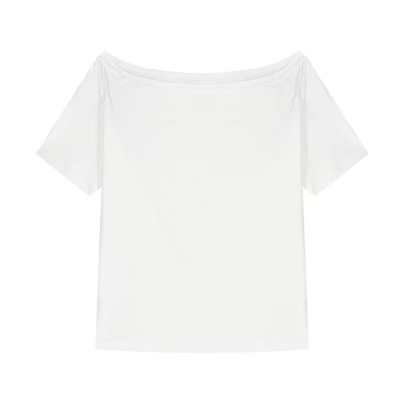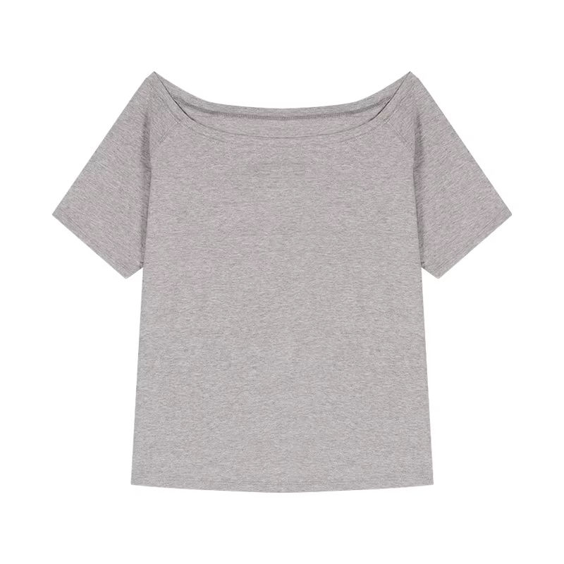 เสื้อยืดผู้หญิงผ้าฝ้ายคุณภาพสูง ทรงหลวม ไม่มีปก แขนสั้น แบบเรียบง่าย สไตล์แฟชั่น ผลิตจำนวนมาก เป็นมิตรกับสิ่งแวดล้อม