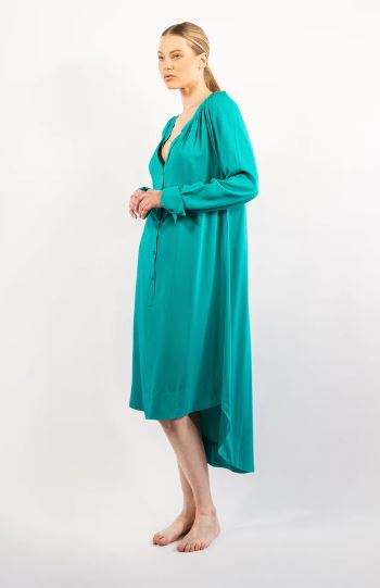 ชุดเดรสลำลองสำหรับผู้ใหญ่ผ้าโพลีเอสเตอร์ย้อมสีล้วนแขนยาวคลุมเข่าชุดเดรสลำลองแฟชั่นแบบกำหนดเองใหม่สำหรับฤดูร้อน
