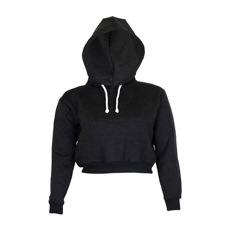 เสื้อครอปมีฮู้ดหนาแบบเรียบของผู้หญิงเสื้อครอปโอเวอร์ไซส์แฟชั่นตามสั่ง