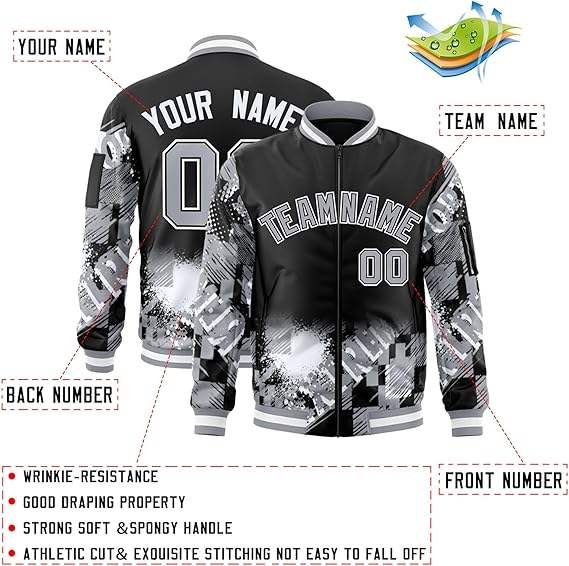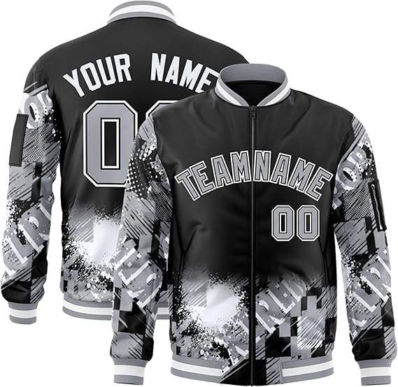เสื้อแจ็คเก็ตแฟชั่นสไตล์วาร์ซิตี้ แบบ Letterman ทรงเบสบอล คอตั้ง ปักตัวอักษร ตัวเลข และโลโก้ด้านหน้า สำหรับผู้ชาย ผู้หญิง และเยาวชน