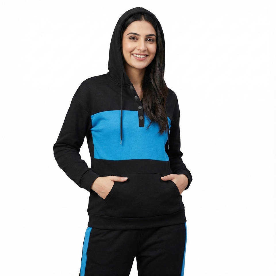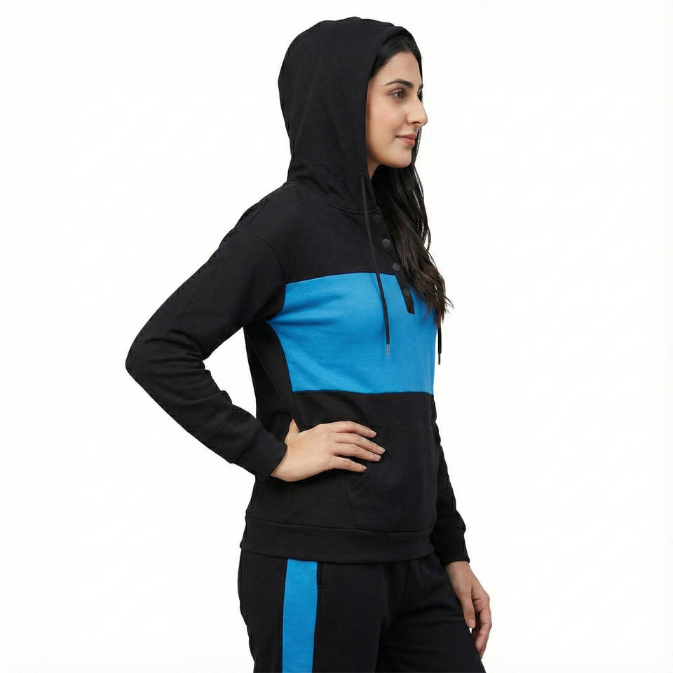 เสื้อฮู้ดสไตล์เฮนลีย์สำหรับผู้หญิง แบบสวมหัว มีกระดุม 1/4 กระเป๋าแบบจิงโจ้ ทรงปกติ สวมใส่สบาย