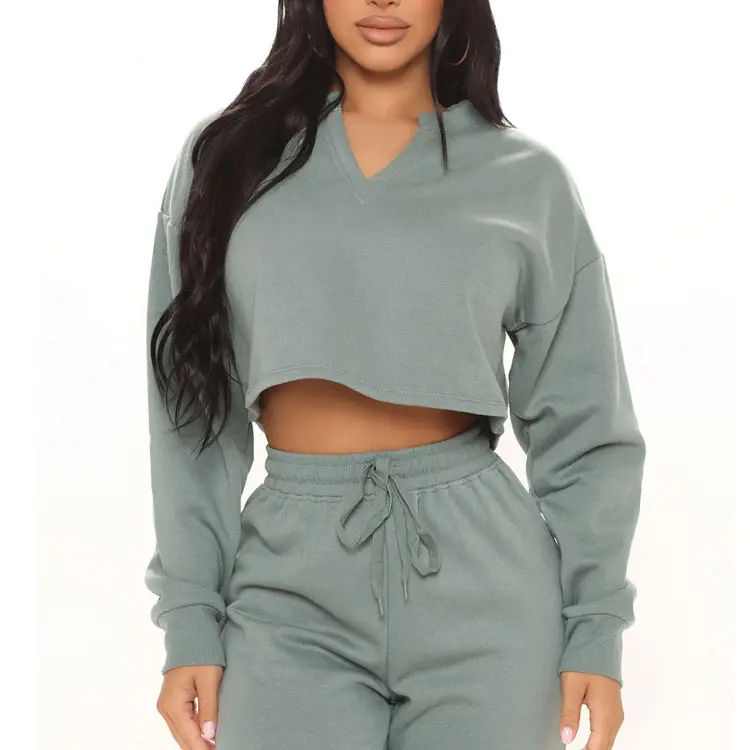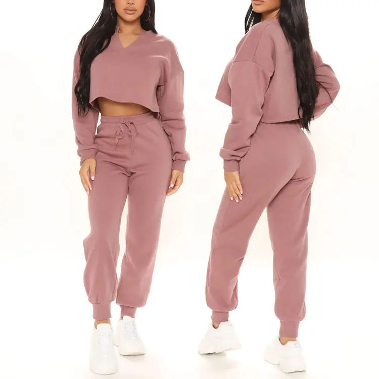 ชุดวอร์มผ้าฝ้าย2ชิ้นสำหรับผู้หญิงชุดวอร์มโอเวอร์ไซส์ชุดครอปท็อปชุดวอร์ม