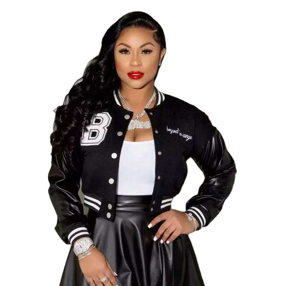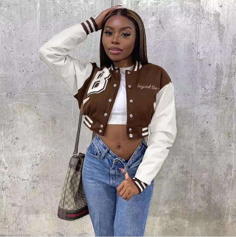 เสื้อแจ็คเก็ตวาร์ซิตี้ผู้หญิง ผ้าขนสัตว์/แคชเมียร์ คุณภาพสูง ระบายอากาศได้ดี ทรงครอป ปักลาย แฟชั่นสั่งทำพิเศษ