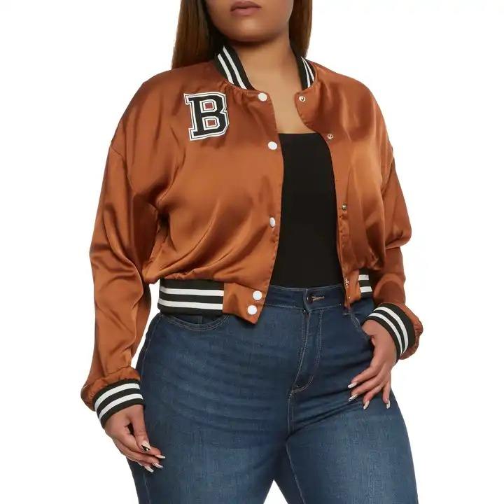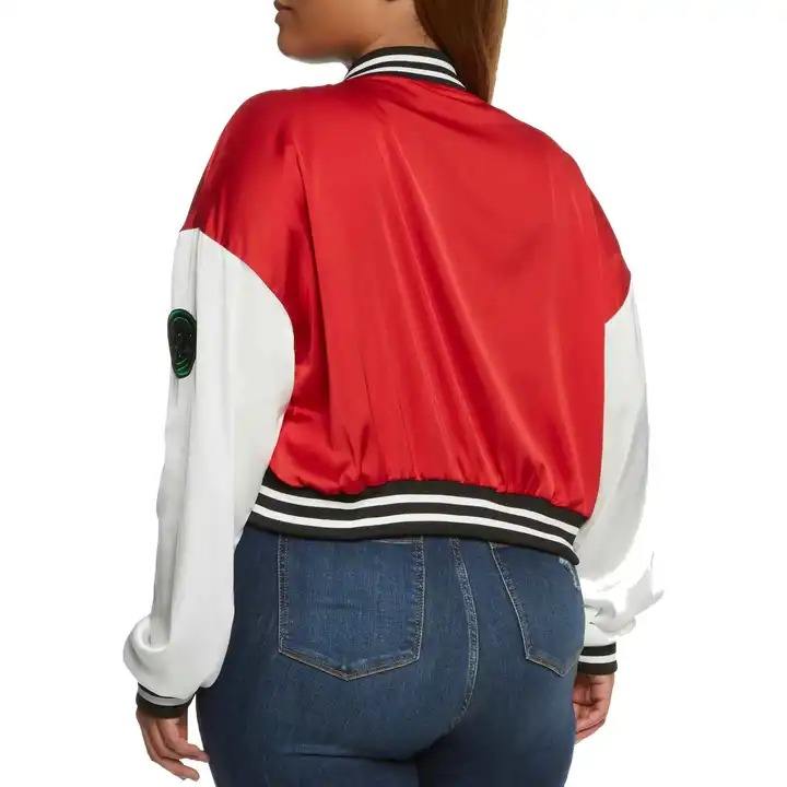 เสื้อแจ็คเก็ตตัวแทนของผู้หญิงที่ทันสมัยที่กําหนดเองหลวมลําลองพิมพ์เสื้อแจ็คเก็ตเครื่องบินทิ้งระเบิดชุดเบสบอลสีสันสดใส