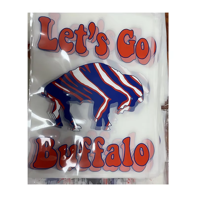 บริการส่งด่วนแบบกำหนดเอง ลายพิมพ์ฟุตบอลบัฟฟาโลแบบพลาสติซอล ลายพิมพ์แบบรีดร้อน ลายพิมพ์แบบสกรีน ลายพิมพ์แบบ DTF สำหรับเสื้อ