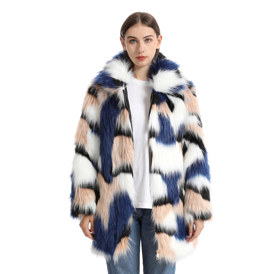 Custom Faux Fur Coat Wholesale Women Faux Fur Coat Colorful Rainbow Elegant Thick Faux Fur Coat for Women