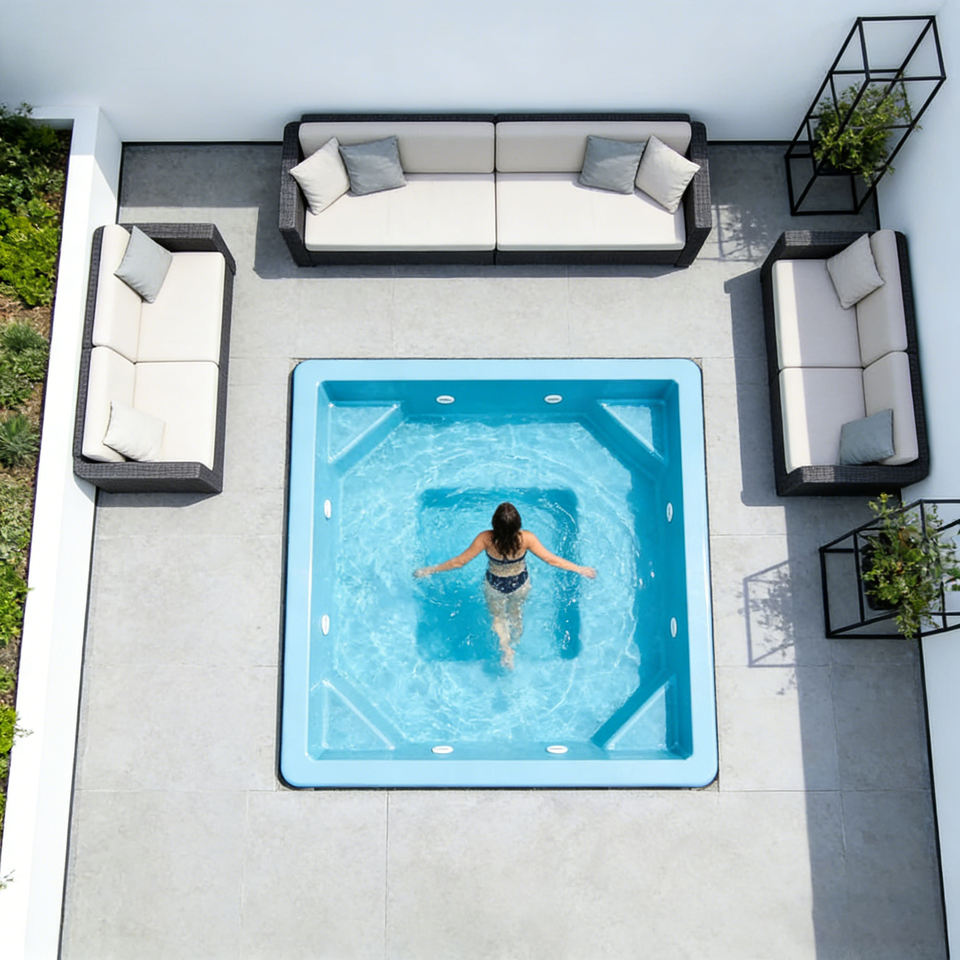 สระว่ายน้ำไฟเบอร์กลาสแบบกำหนดเอง ทนทานต่อรังสียูวี ทนทานต่อการกัดกร่อน ทนลม ทนรอยแตก ทนการเจาะทะลุ สำหรับติดตั้งบนพื้นดินในสวนหลังบ้าน