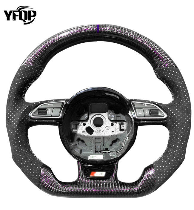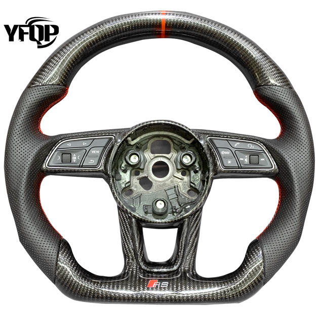 พวงมาลัยคาร์บอนไฟเบอร์สีดำแบบสั่งทำพิเศษสำหรับรถยนต์ Audi A4 A5 S3 45 RS3 RS4 RS5 B9