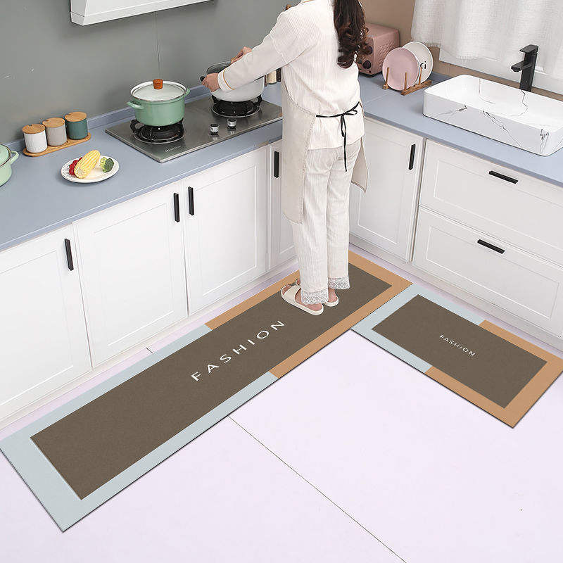 ชุดพรมปูพื้นครัวทันสมัยแบบสั่งทำพิเศษ ชั้นดูดซับทำจากโพลีเอสเตอร์ พร้อมแผ่นยางกันลื่นด้านหลัง ซักทำความสะอาดได้ ตกแต่งบ้าน