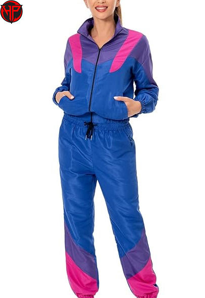 ชุดออกกำลังกายผู้หญิงแบบมาตรฐาน 1 ชุด ลายพิมพ์ ฮู้ดปรับได้ ซิป กระเป๋า ขอบเอวยางยืด กันน้ำ