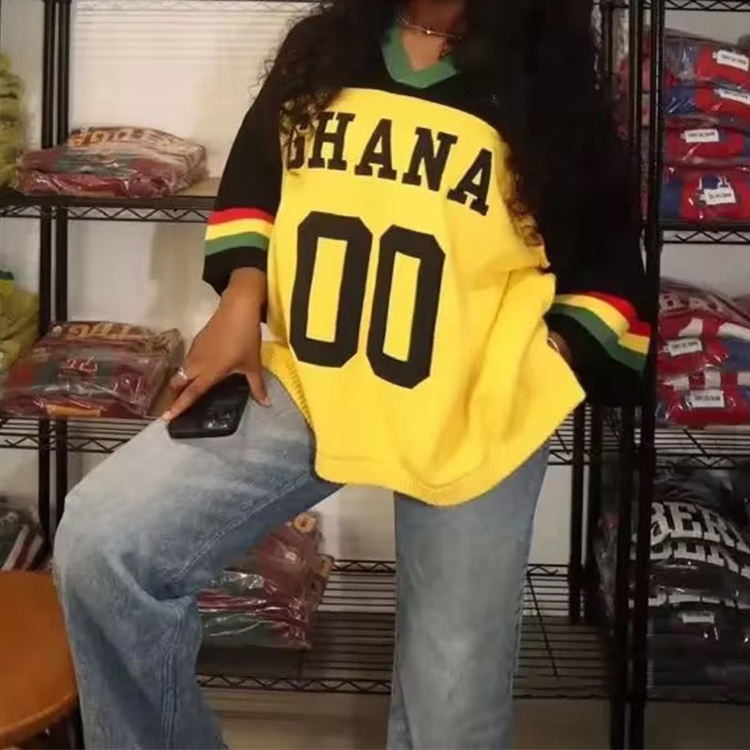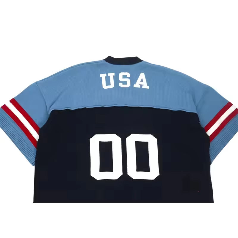เสื้อสเวตเตอร์ถักสำหรับผู้หญิงเสื้อเจอร์ซีย์ฟุตบอลอเมริกันแฟชั่นดีไซน์ธงตามสั่ง