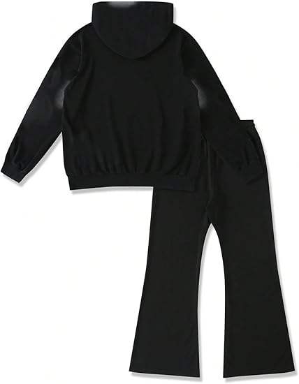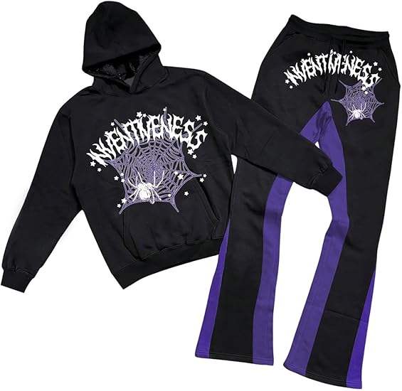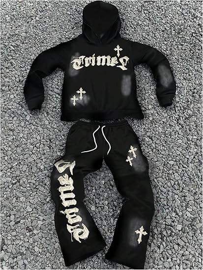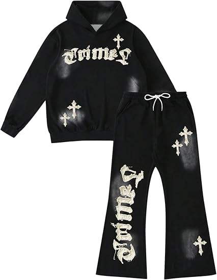 ชุดวอร์มแฟชั่นทรงขาบานแบบยูนิเซ็กซ์สำหรับผู้ชาย ชุดเซ็ตเสื้อและกางเกงวอร์มทรงขาบาน ล้างสีแบบแอซิดวอช