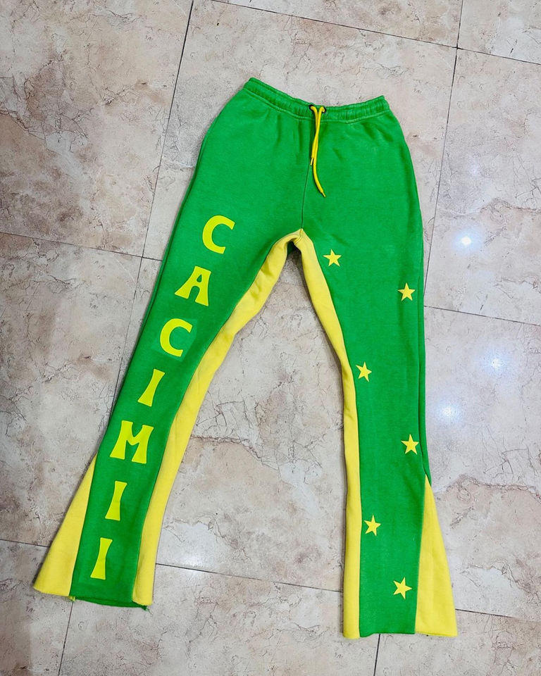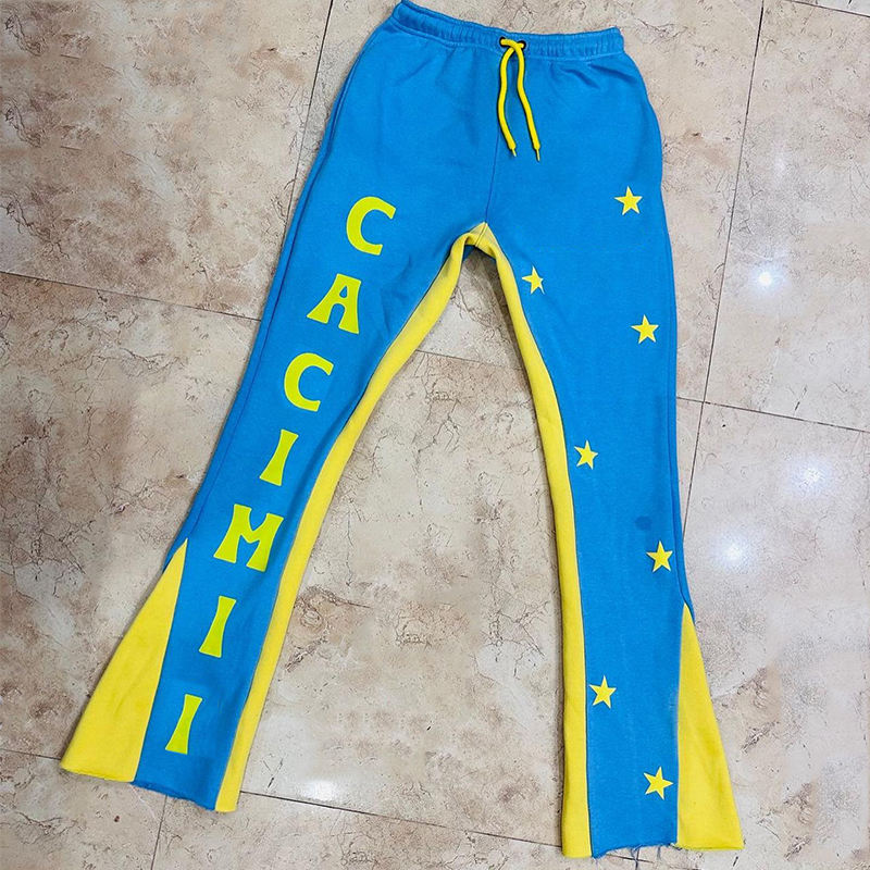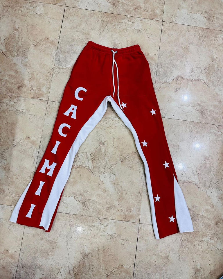 กางเกงวอร์มทรงขาบานแบบมีเชือกผูกเอวสำหรับผู้ชาย ผ้าคอตตอนหนา 500 กรัม ลายทางแบบดิสเทรส สไตล์สตรีทแวร์ลำลอง